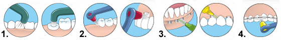 3. Reinigung um Implantate, 4. Reinigung unter festen Spangen/brackets
